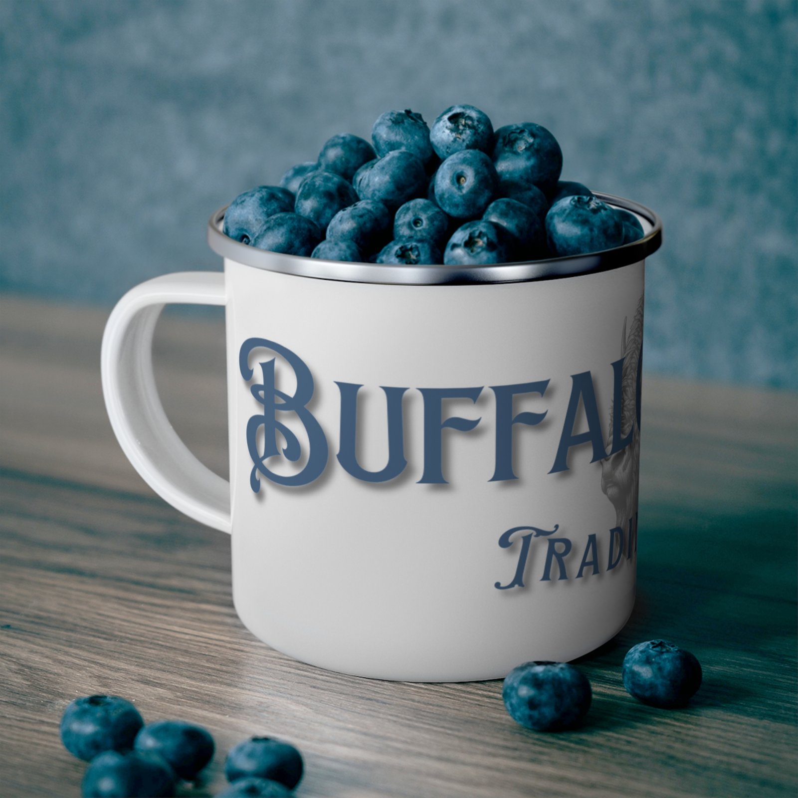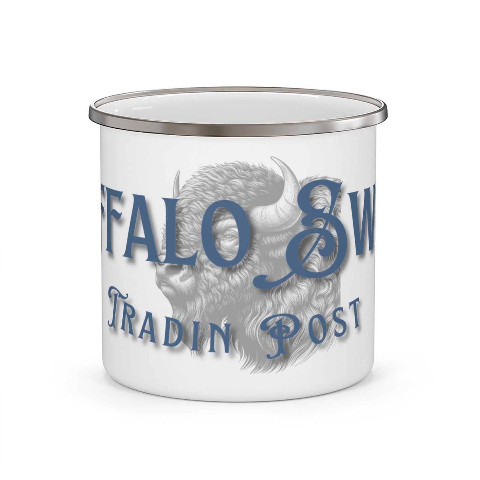 BSTP Enamel Camping Mug — ‘Buffalo Swamp Trading Post’ Rustic Outdoor Coffee Cup