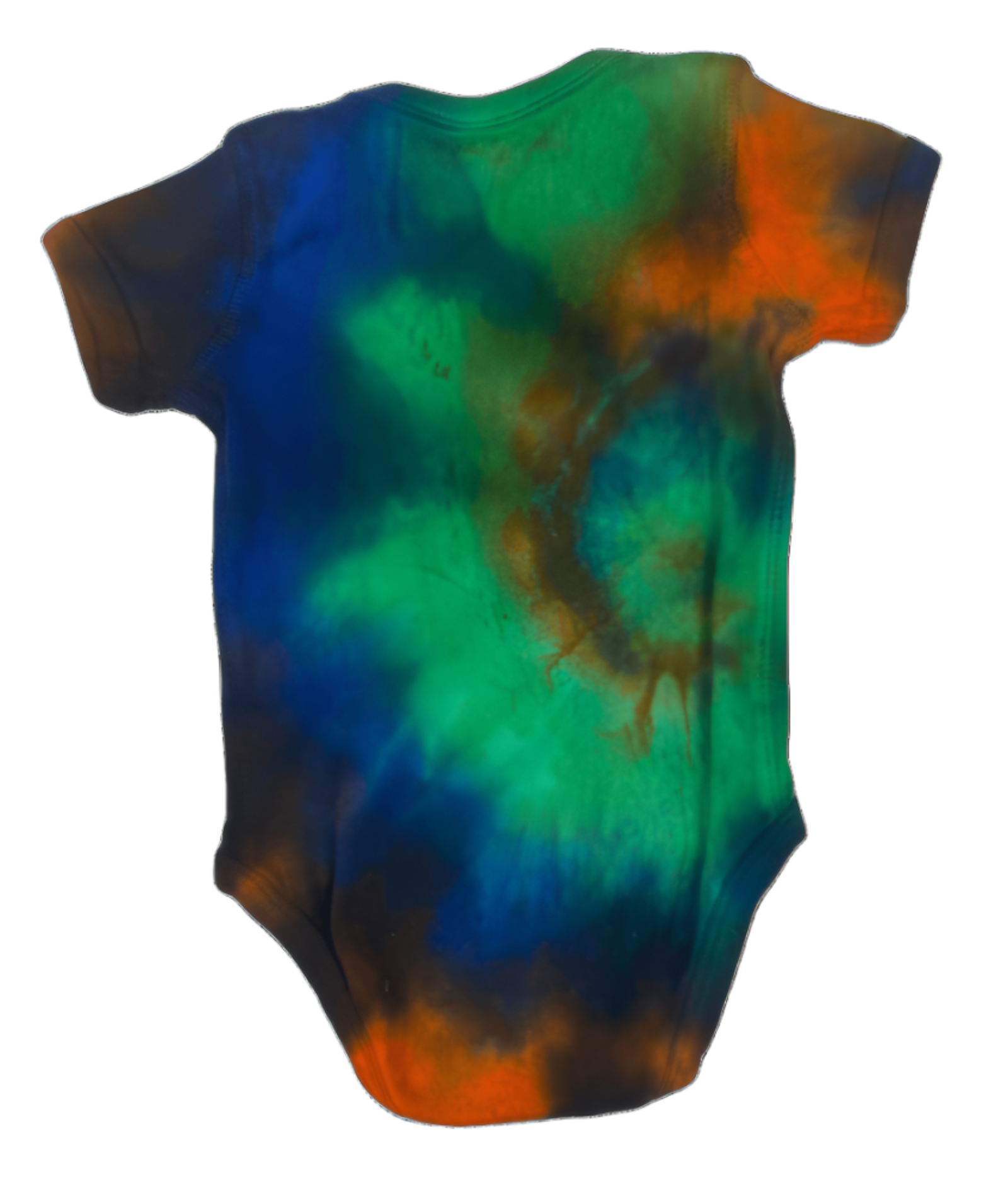 Outfit your little explorer in our earthy green, blue, and orange tie-dye Infant One Piece. Hand-dyed from soft 100% cotton with an easy snap closure.