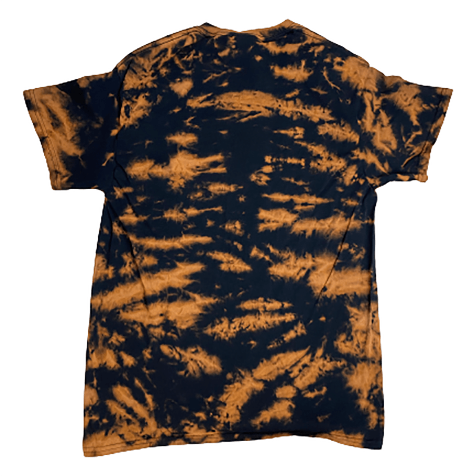 Get a unique grunge look with our ‘Ember & Ash’ reverse tie-dye t-shirt. Hand-dyed from a black cotton tee for a one-of-a-kind mottled orange and black design.