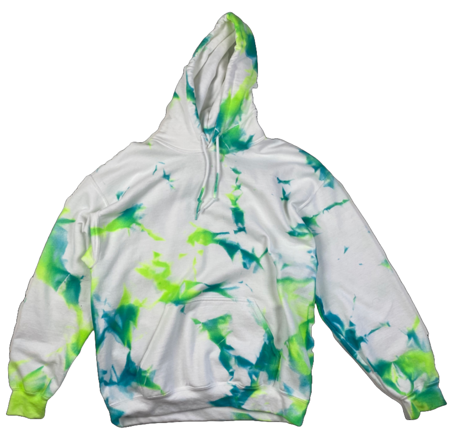 It’s time for your style to shine! Our hand-dyed unisex hoodie is a bold, energetic blend of electric green and deep teal on a bright white canvas. It’s a look that says you’re not afraid to stand out, and probably have a great sense of humor. Each hoodie is a unique, one-of-a-kind creation, so you’ll have a look that’s all your own.