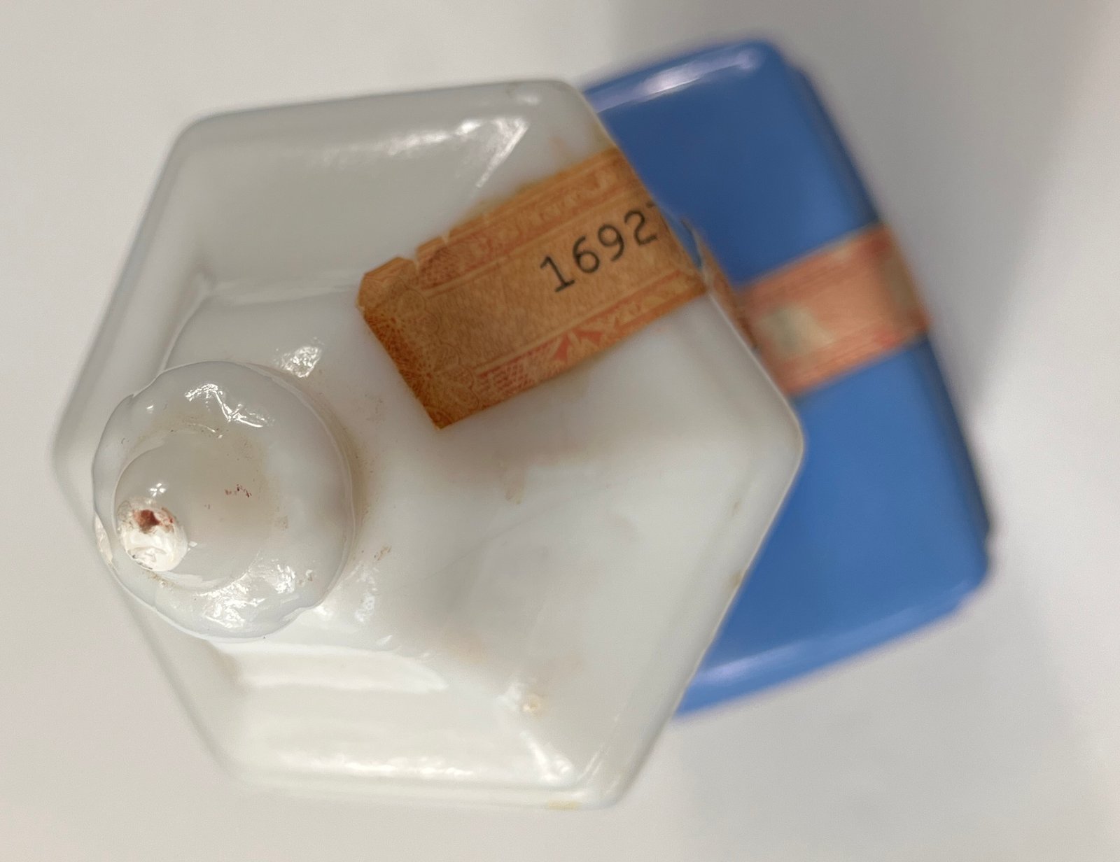 – Beautiful blue milk glass construction