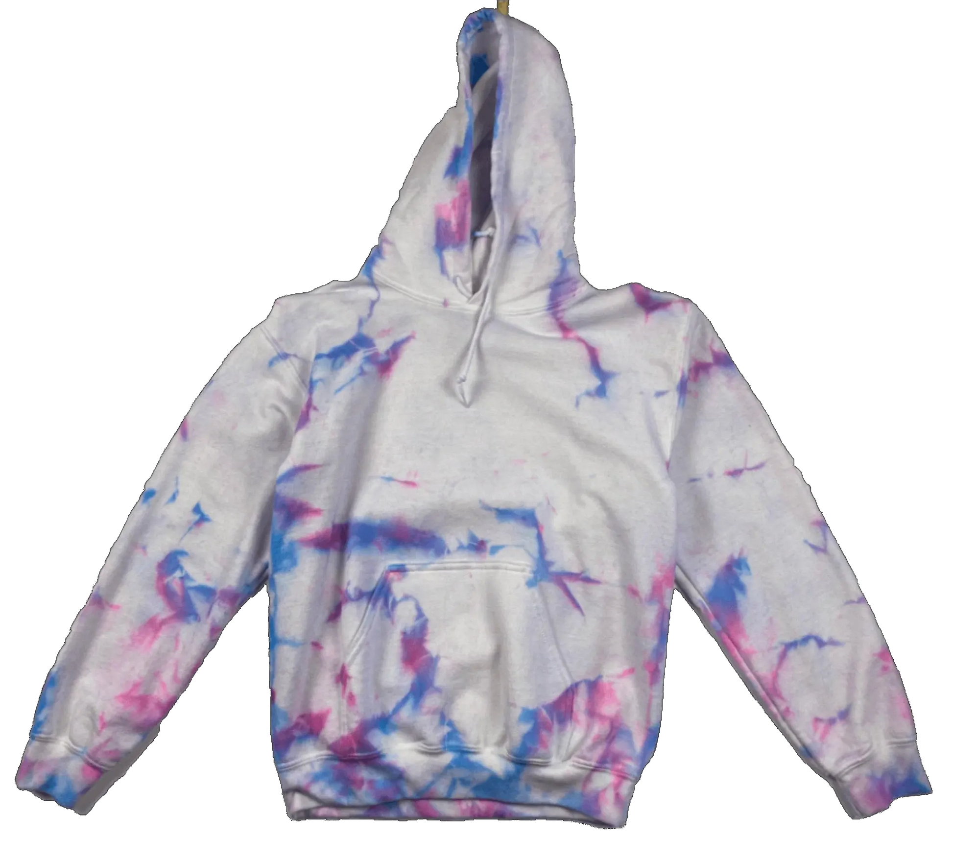 Fall in love with this dreamy hand-dyed unisex hoodie featuring a delectable swirl of pink and blue on a crisp white background, reminiscent of a perfect summer day at the fair. Each hoodie is a unique work of art, ensuring you'll have a look that's completely your own.